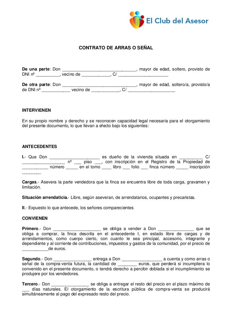 De una parte el vendedor. Contrato de arras para compraventa de vivienda o local. Modelo de contrato de Arras A continuacin encontrars todo lo que necesitas saber sobre el contrato de arras te recomendamos no firmar nada hasta que leas la informacin que te presentamos.