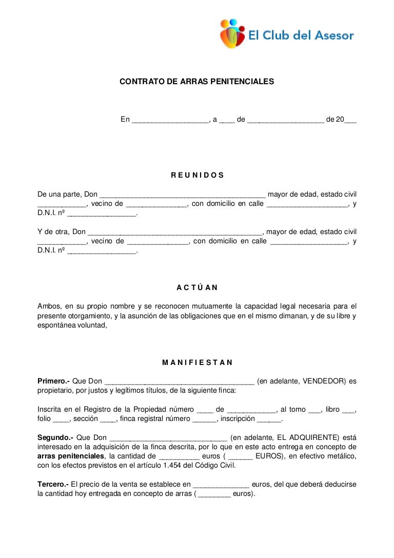 El contrato de arras. Descargar Modelo Contrato De Arras. DESCARGAR MODELO CONTRATO DE ARRAS PENITENCIALES PDF.