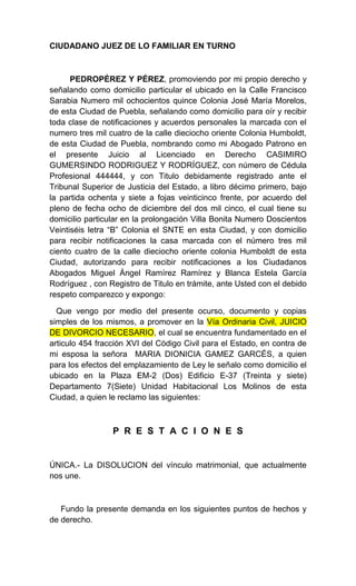 MODELO DE DEMANDA DE DIVORCIO VOLUNTARIO Y CONVENIOEl divorcio es la ruptura de un matrimonio vlido en la vida de los esposos decretada por una autoridad competente y fundada en algunas de las causas expresamente establecidas en la ley. Demanda de Divorcio Vincular hemos adquirido un bien que integra la masa ganancial. Escribir una carta que anuncie una demanda es una solucin de ltima instancia antes de ir a la corte y slo debe usarse cuando otros recordatorios verbales y escritos han fallado.
