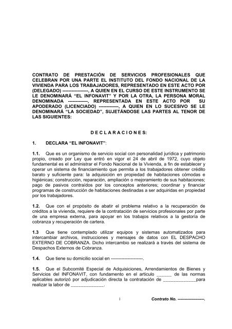 Modelo Del Contrato De Prestacia N De Servicios Infonavit