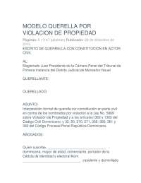 MODELO DE Querella PENAL. I- Que por medio del presente escrito. Modelo de Querella Criminal I- IDENTIFICACIN DEL QUERELLANTE.
