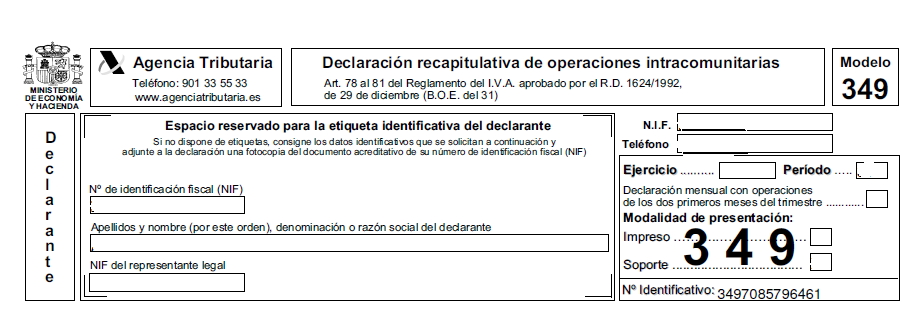 El modelo 349 recapitulativo de operaciones intracomunitarias lo presentan los sujetos pasivos que hayan realizado cualquiera de las siguientes operaciones. Cmo rellenar el modelo 349. Declaracin recapitulativa de operaciones intracomunitarias modelo 349 Sirve para consignar los datos de identificacin de los proveedores y adquirentes as como en su caso la base imponible relativa a las operaciones intracomunitarias declaradas.